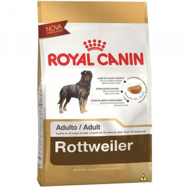 A Ração Royal Canin para Cães Adultos da Raça Rottweiler, é para seu cão de guarda tornar-se eficiente e um verdadeiro atleta. Rottweiler possui uma cabeça forte e compacta, um focinho curto e uma mandíbula muito poderosa. Os formatos de sua cabeça e pescoço proporcionam aos conjuntos de músculos maior força e contração.